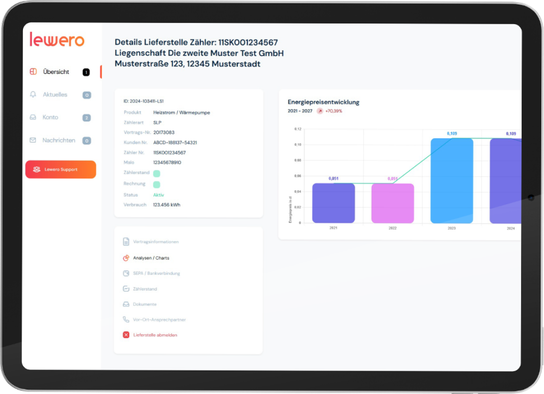 Ob Mittelstand, Einzelhandel, LEH oder Immobilienverwaltung - Lewero übernimmt die komplette Kommunikation & Organisation mit Ihrem Energieversorger. Sie erhalten regelmäßig optimierte Tarife durch unsere unabhängigen und transparenten Ausschreibungen bei denen wir bis zu 100 Stadtwerke & überregionale Energieversorger für Sie anfragen.